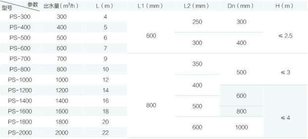 PS 型技術(shù)參數(shù) PS type technical parameters